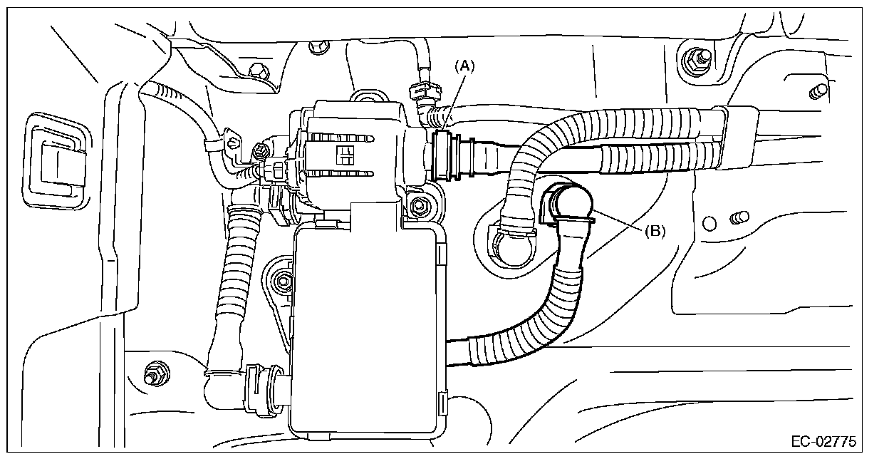 11. Disconnect drain tube A (A) and drain tube B (B).