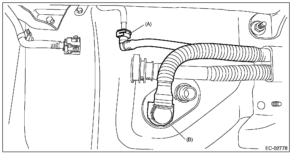 12. Disconnect the connector (A) from leak check valve assembly, and remove the leak check valve assembly.