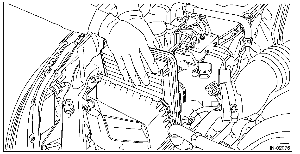 5. Connect the power steering oil pressure hose (suction hose) to the clip on the side of air cleaner case (rear).