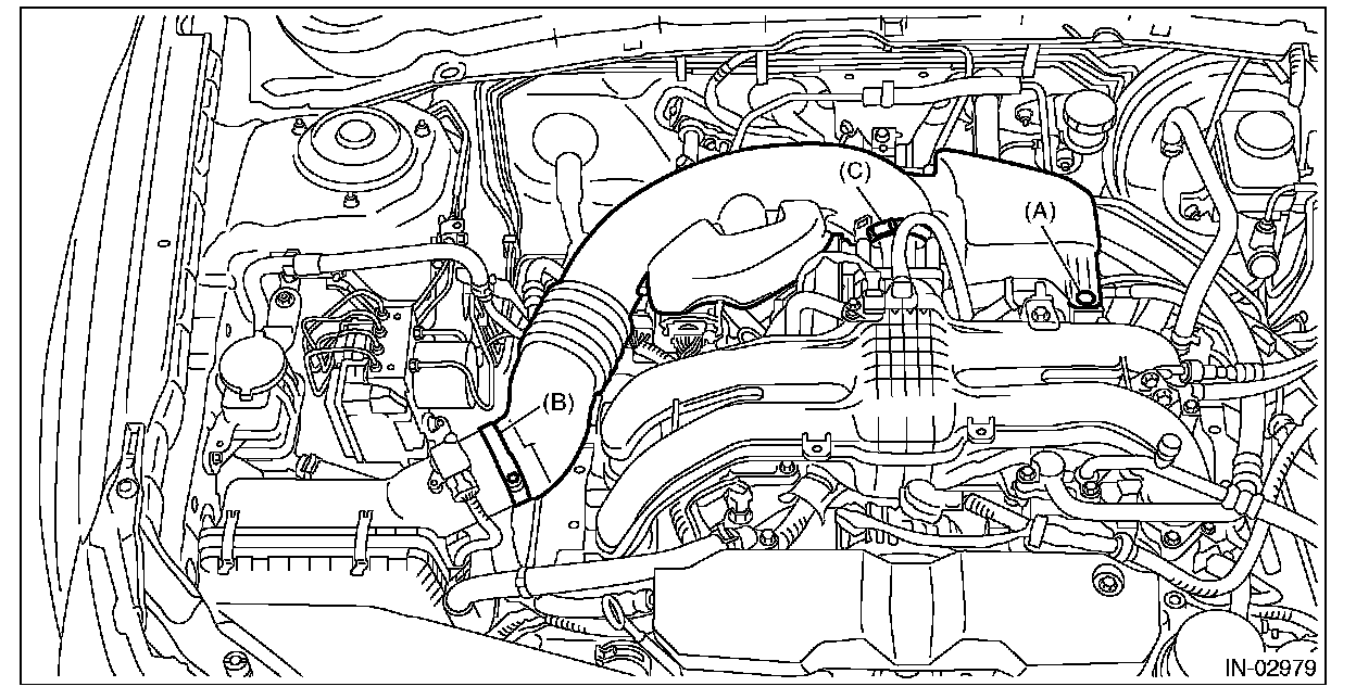 4. Loosen the clamp (C) which connects the air intake boot and throttle body.