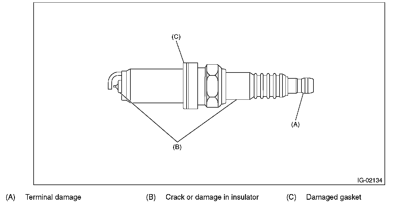 2. Check the spark plug electrode and condition of the insulator. If abnormal, check and repair the cause and replace the spark plug.