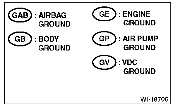 - The ground points shown in the wiring diagram refer to the following: