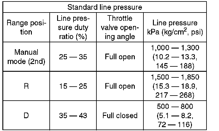 1) Line pressure measurement (under no load):