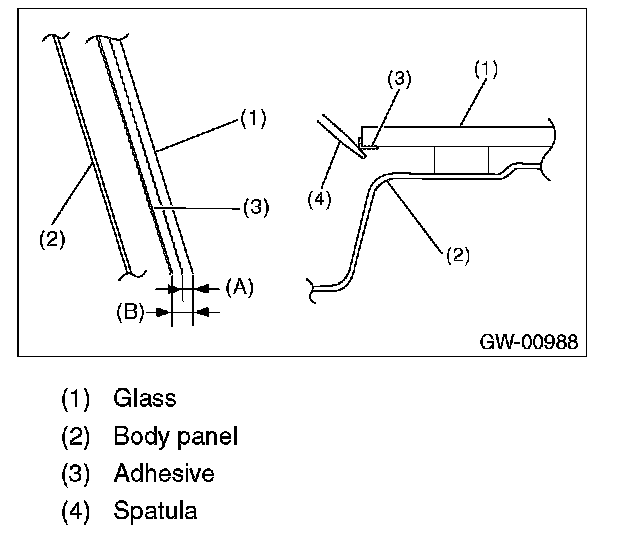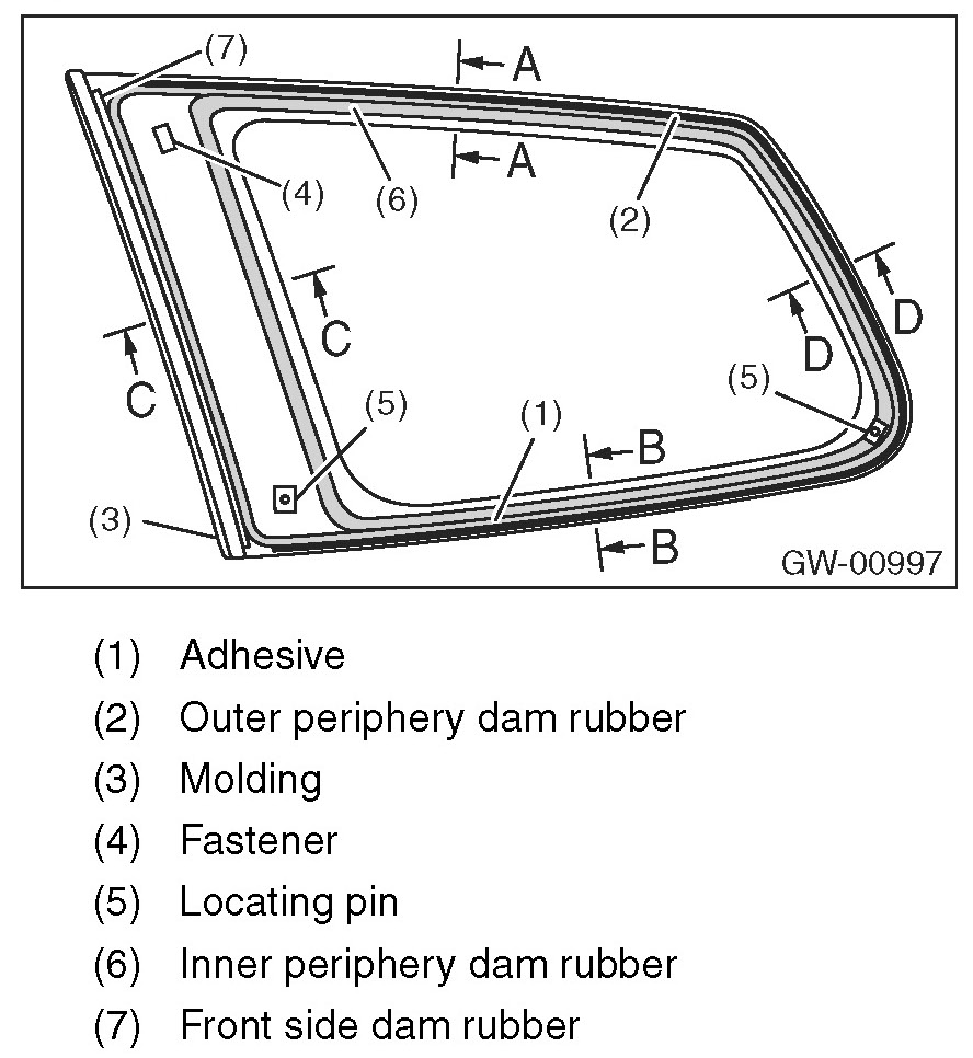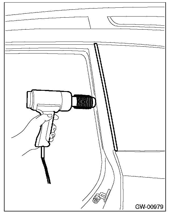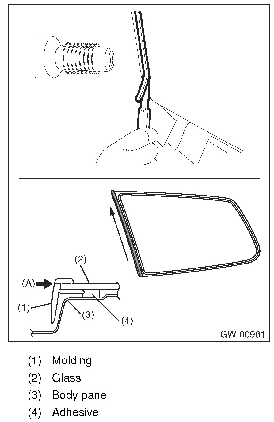8. Apply adhesive in the same procedure as for windshield glass.