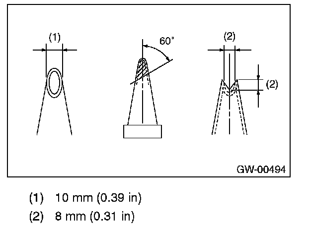 CAUTION: Cutter edge shall be approximately 10 mm (0.39 in) to protect the vehicle body from damage.
