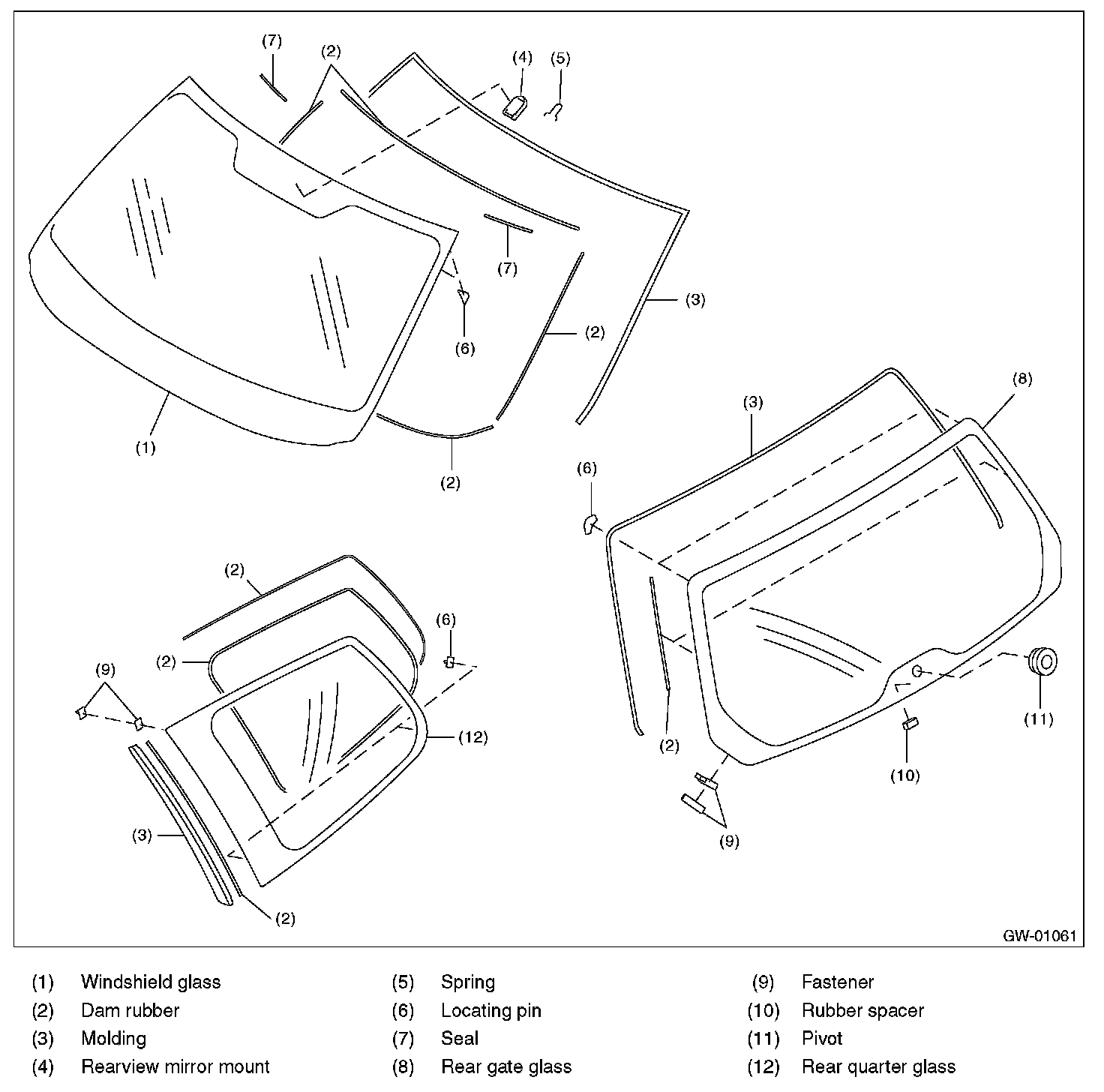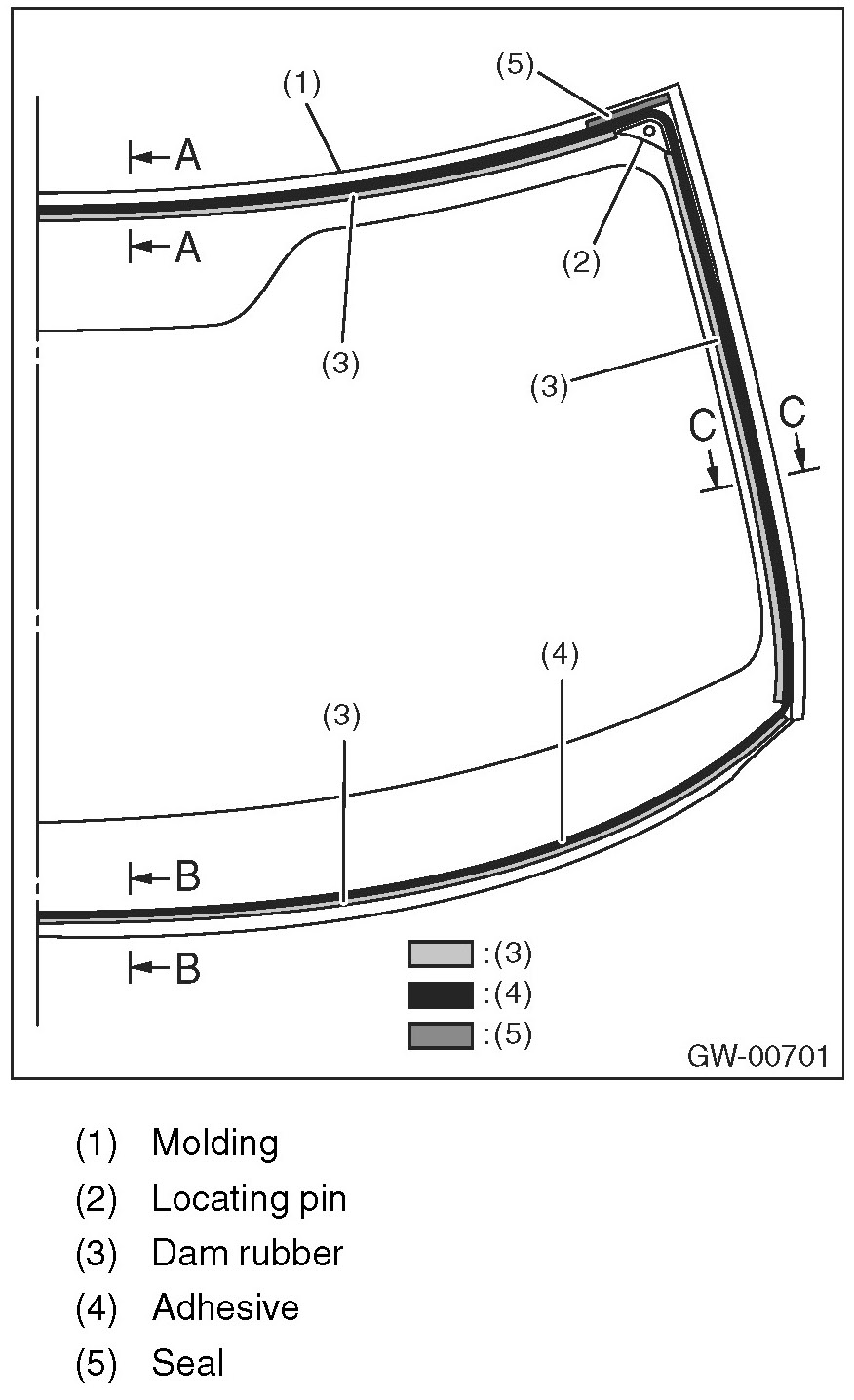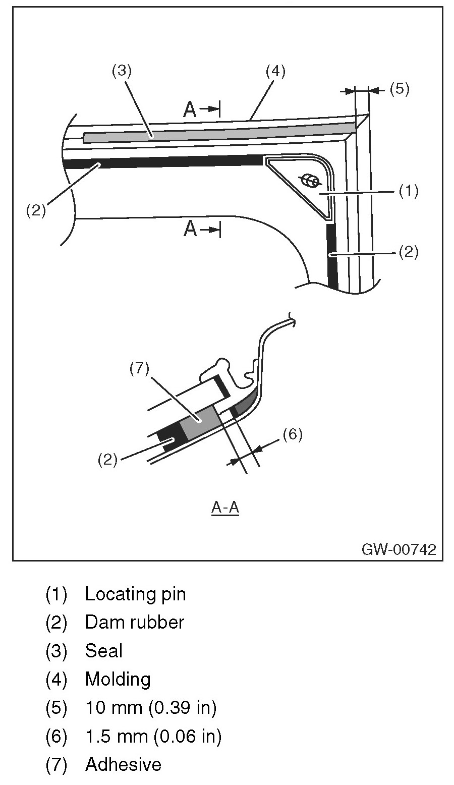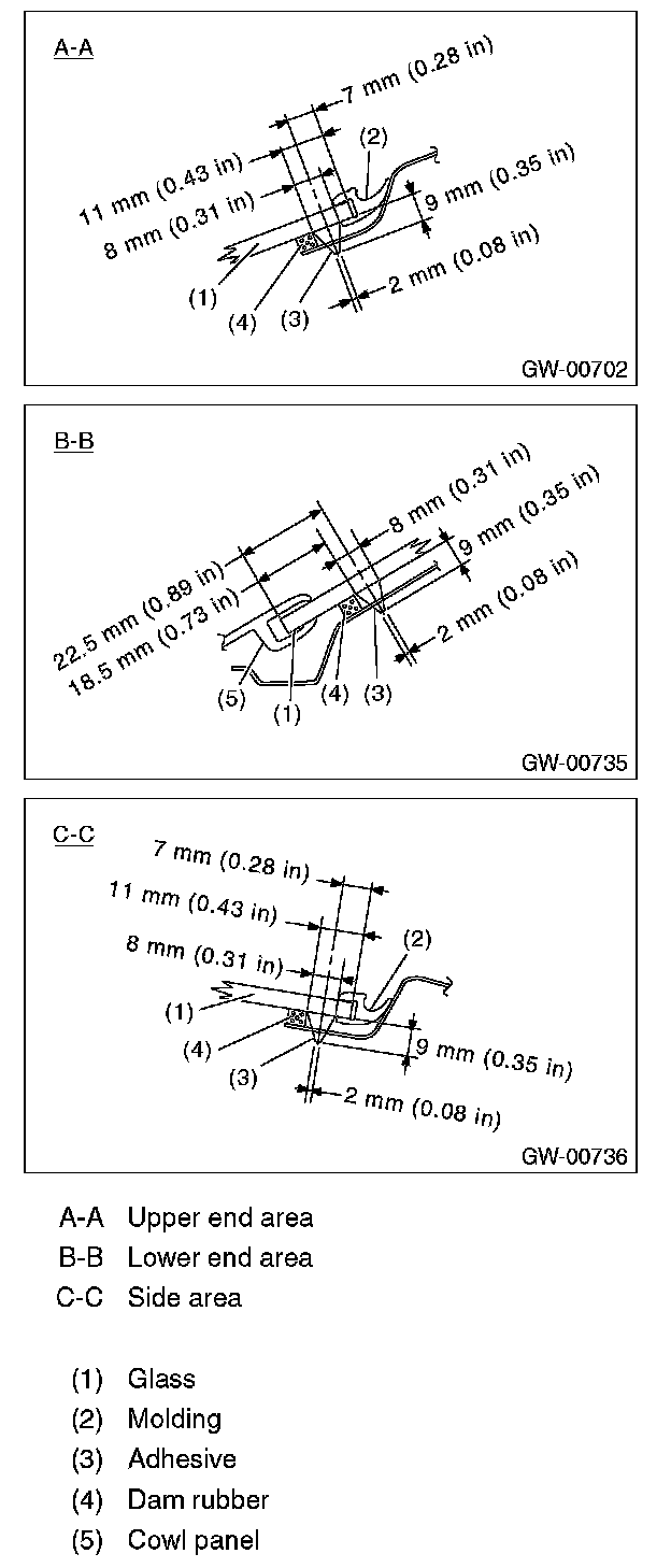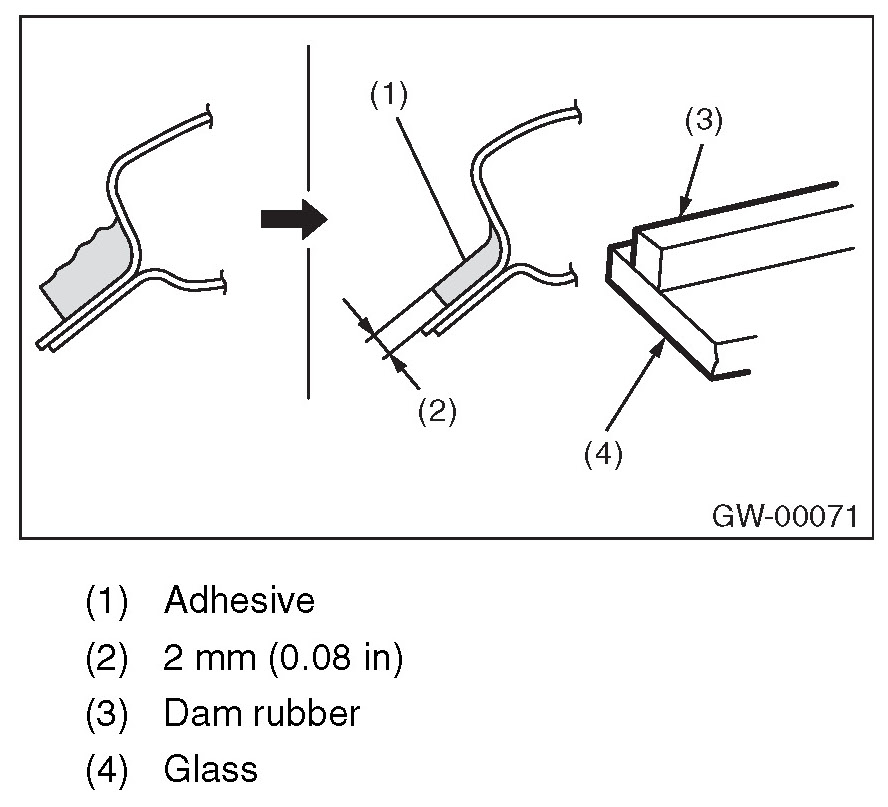 - For minimum drying time and vehicle standing time before driving after bonding, follow instructions or instruction manual from the adhesive manufacturer.
