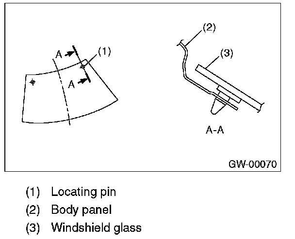 10. Using suction rubber cups, fit the locator pins into the body side, and attach the windshield glass.