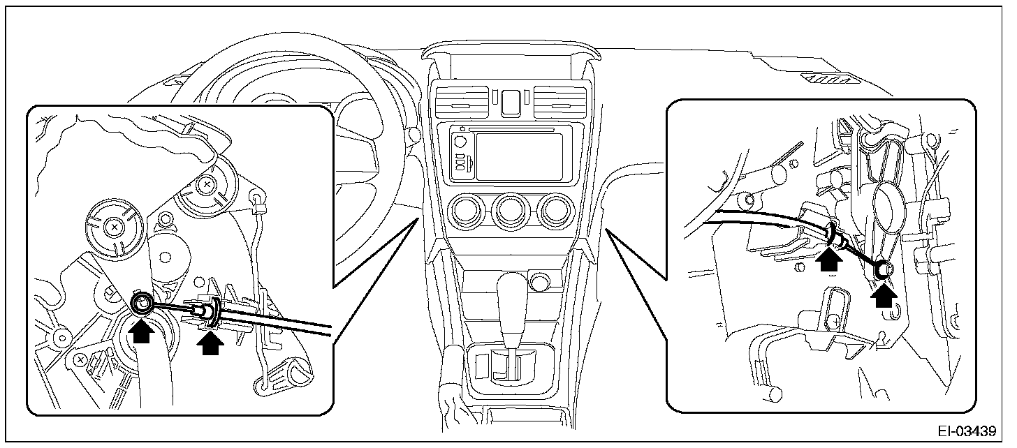 2. On manual A/C models, disconnect the control cables from both sides of the heater and cooling unit assembly.