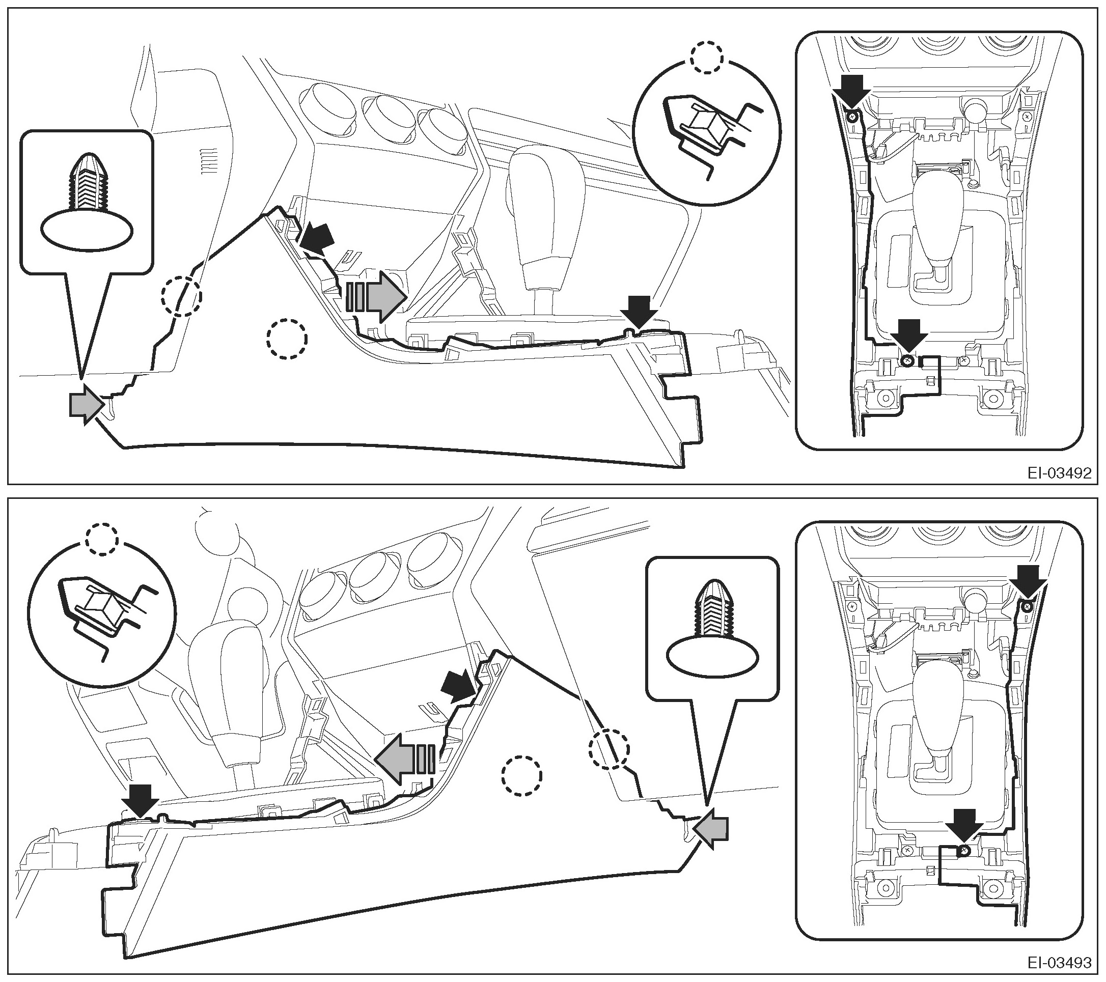2. Release the clips and claws, then pull up the cover - shift lever.