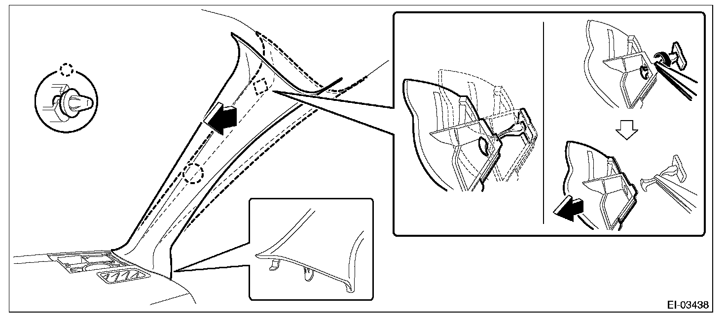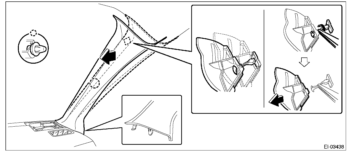 3. Remove the trim panel - front pillar UPR on the left and right sides.