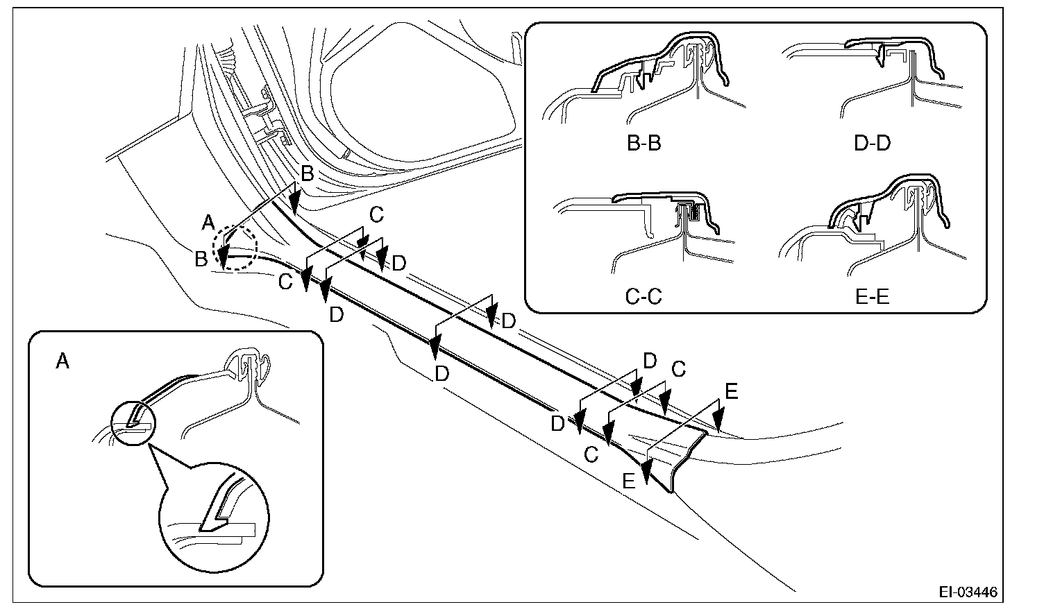 CAUTION: Do not pull with excessive force. Doing so may damage the claws of the cover side sill - rear INN.