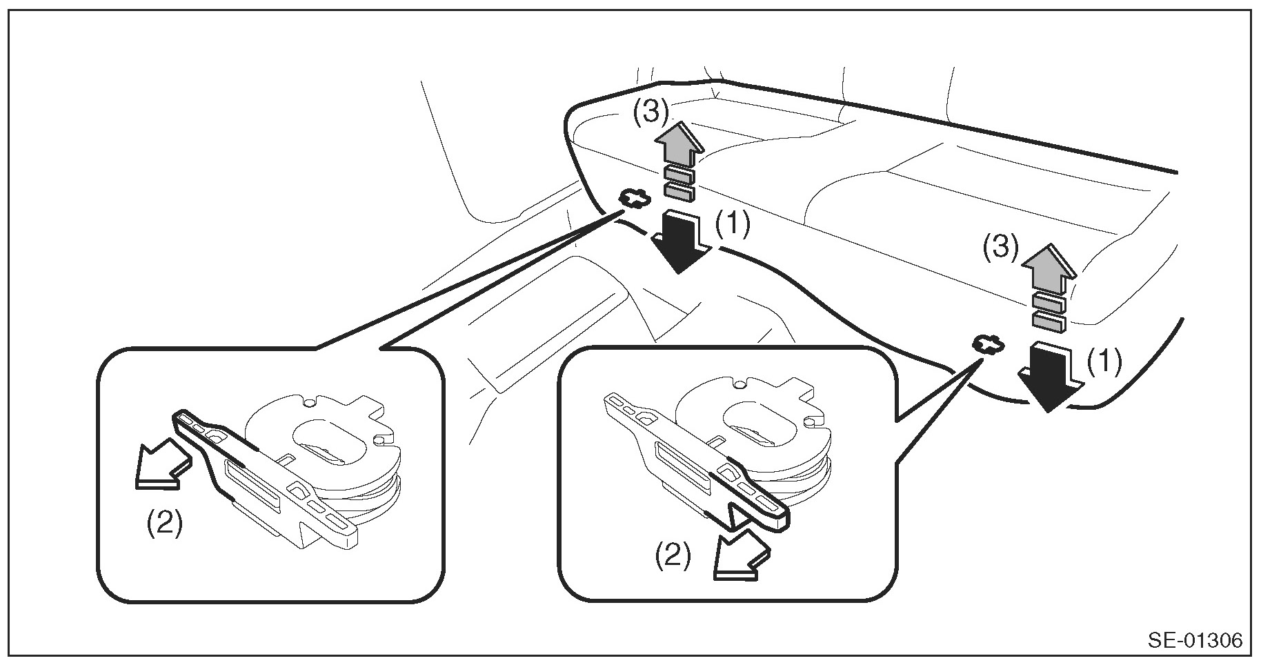 1. Push the corners of the rear seat cushion from above.