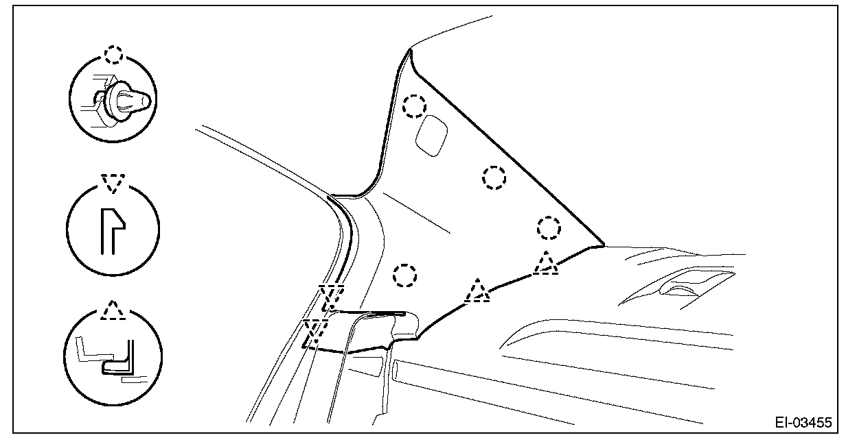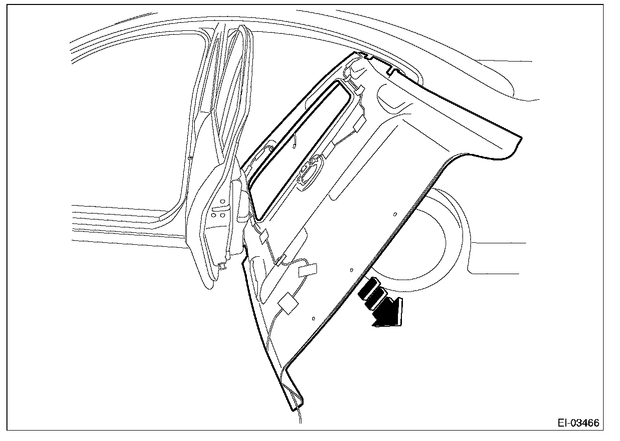 4. Slightly bend the rear end of the trim panel - roof assembly along the character line, and take it out from the rear gate opening.