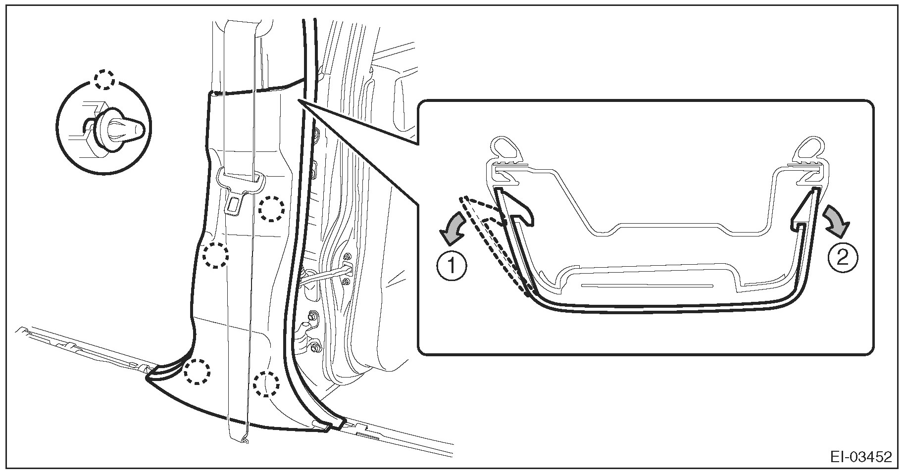 3. Holding the clip twisted as in the previous step, remove the trim panel - front pillar UPR from the clip.