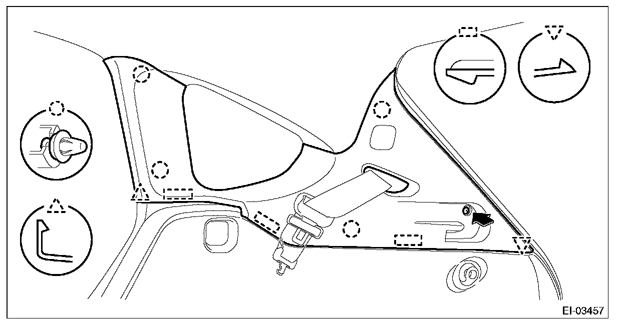 7. Remove the trim panel - center pillar LWR on the left and right sides.