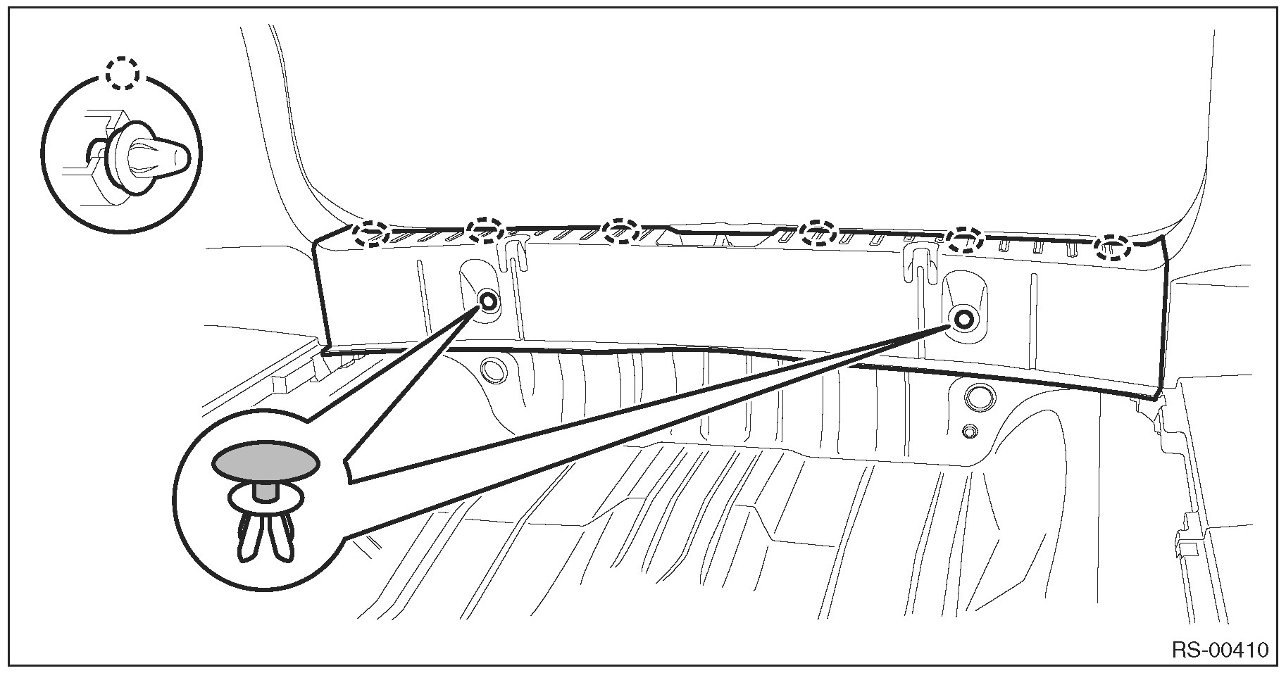 2. Remove the clips, and remove the trim panel - rear apron.