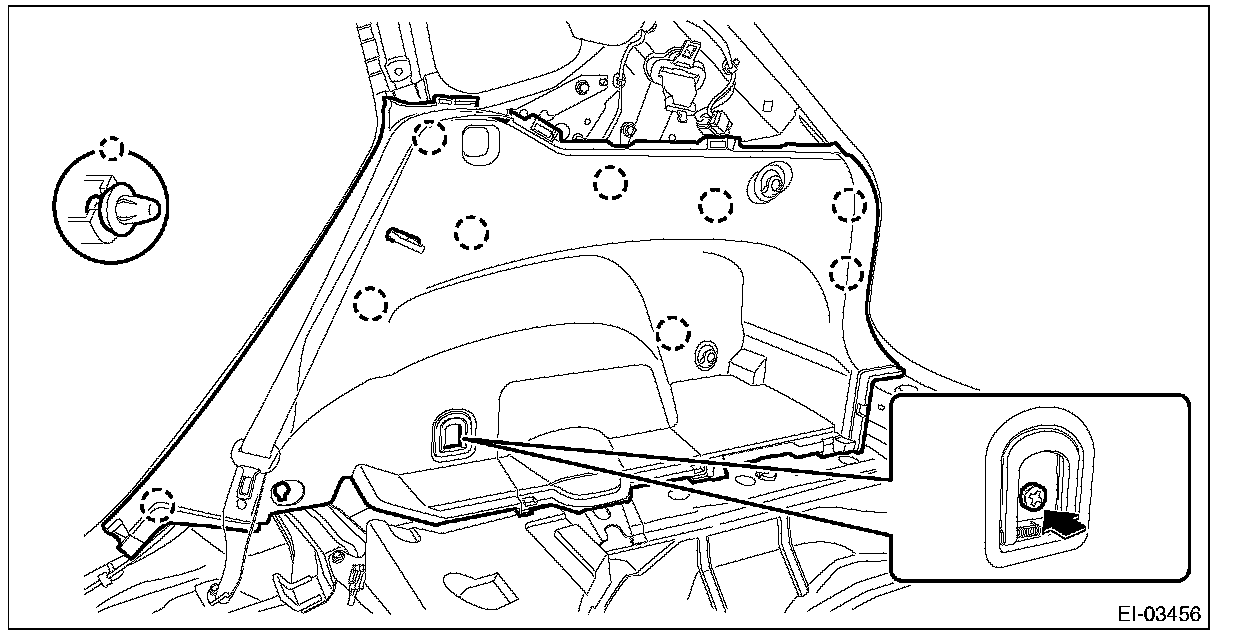 12. Remove the clips, and remove the trim panel - rear pillar UPR on the left and right sides.
