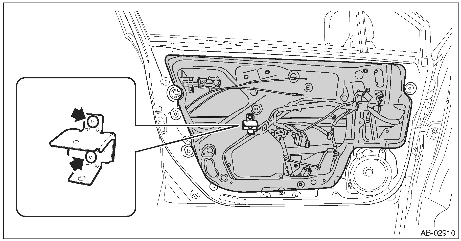 1. Remove the plug at the rear end of the panel assembly - front door.