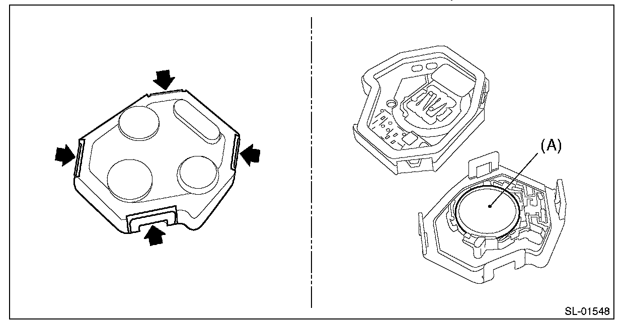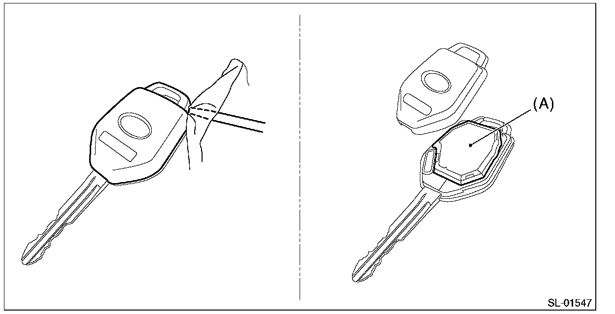 1. Remove the keyless transmitter cover, and take out the transmitter case (A).