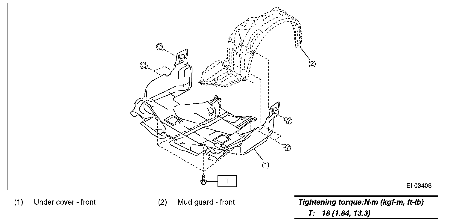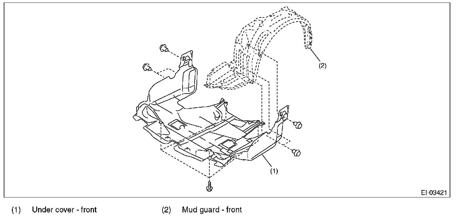 2. Remove the bolts and clips, and remove the under cover - front.