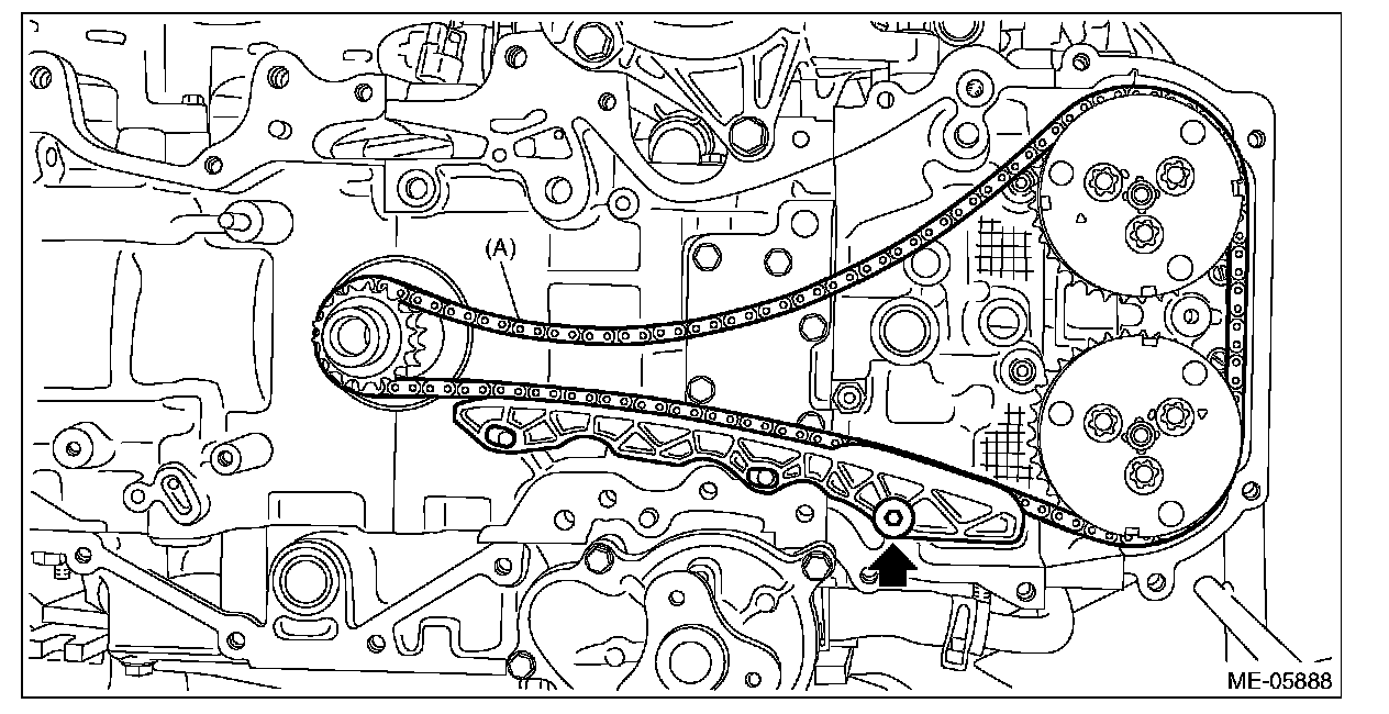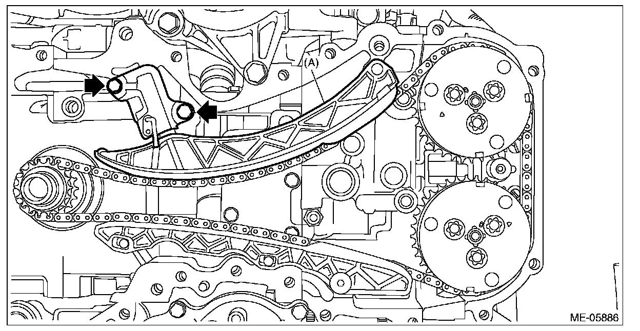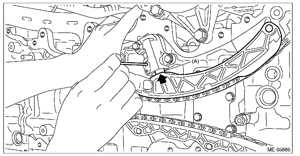 6) Remove the chain guide LH, and remove the timing chain LH (A).