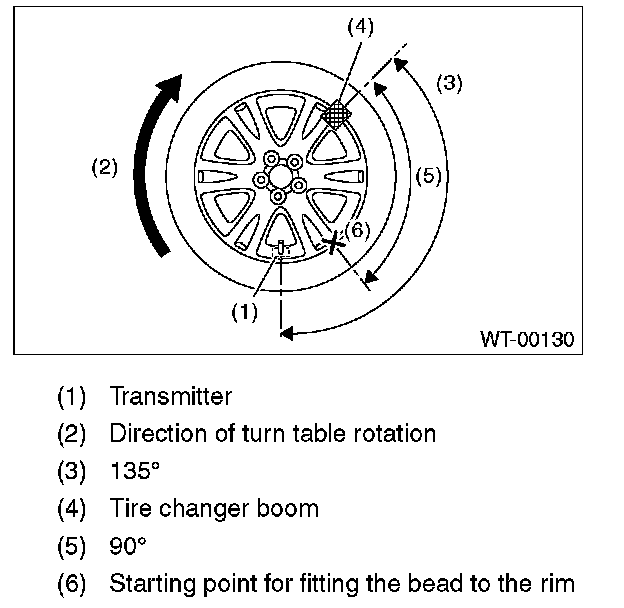 ^ To prevent damaging the transmitter, set the tire changer boom in the position as shown in the figure.