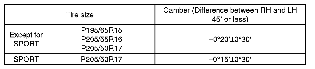 1) Adjust the camber angle to the following value.