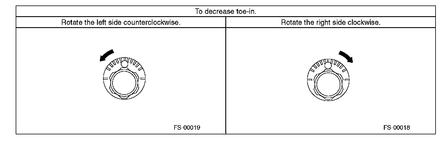 2) When one rear wheel is adjusted in a toe-in direction, adjust the other rear wheel equally in toe-out direction, in order to make the thrust angle adjustment.