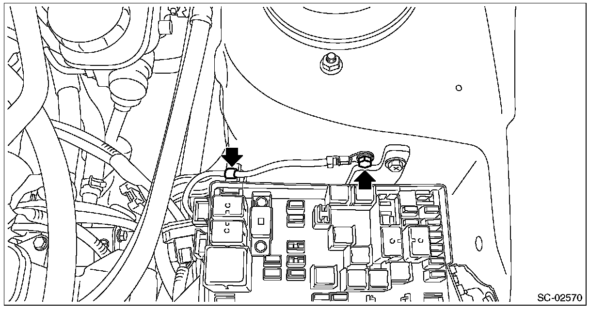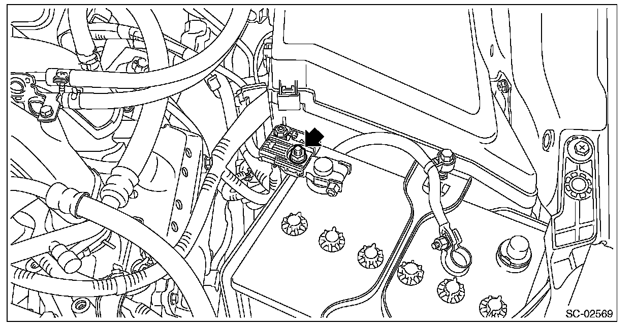 4. Remove the ground terminal from the vehicle and remove the harness clip.