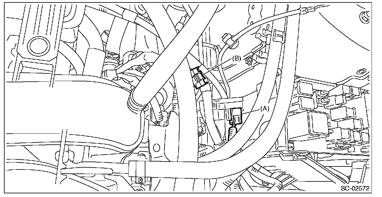 8. Loosen the clamp (B) connecting the air intake boot and air cleaner case (rear).