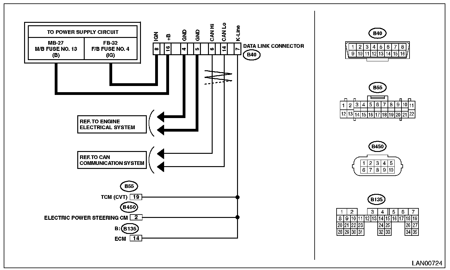 - INSPECTION using the communication for initializing of Subaru Select Monitor cannot be used to diagnose the wiring location marked with "-". Example of DTC data not received LAN System (Diagnostics) and DTC matrix LAN System (Diagnostics) should be used to identify the faulty portion.