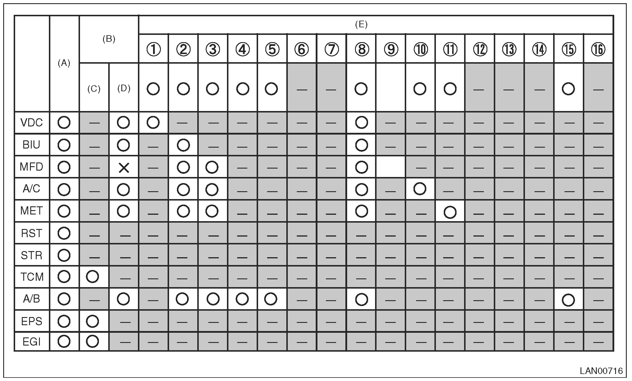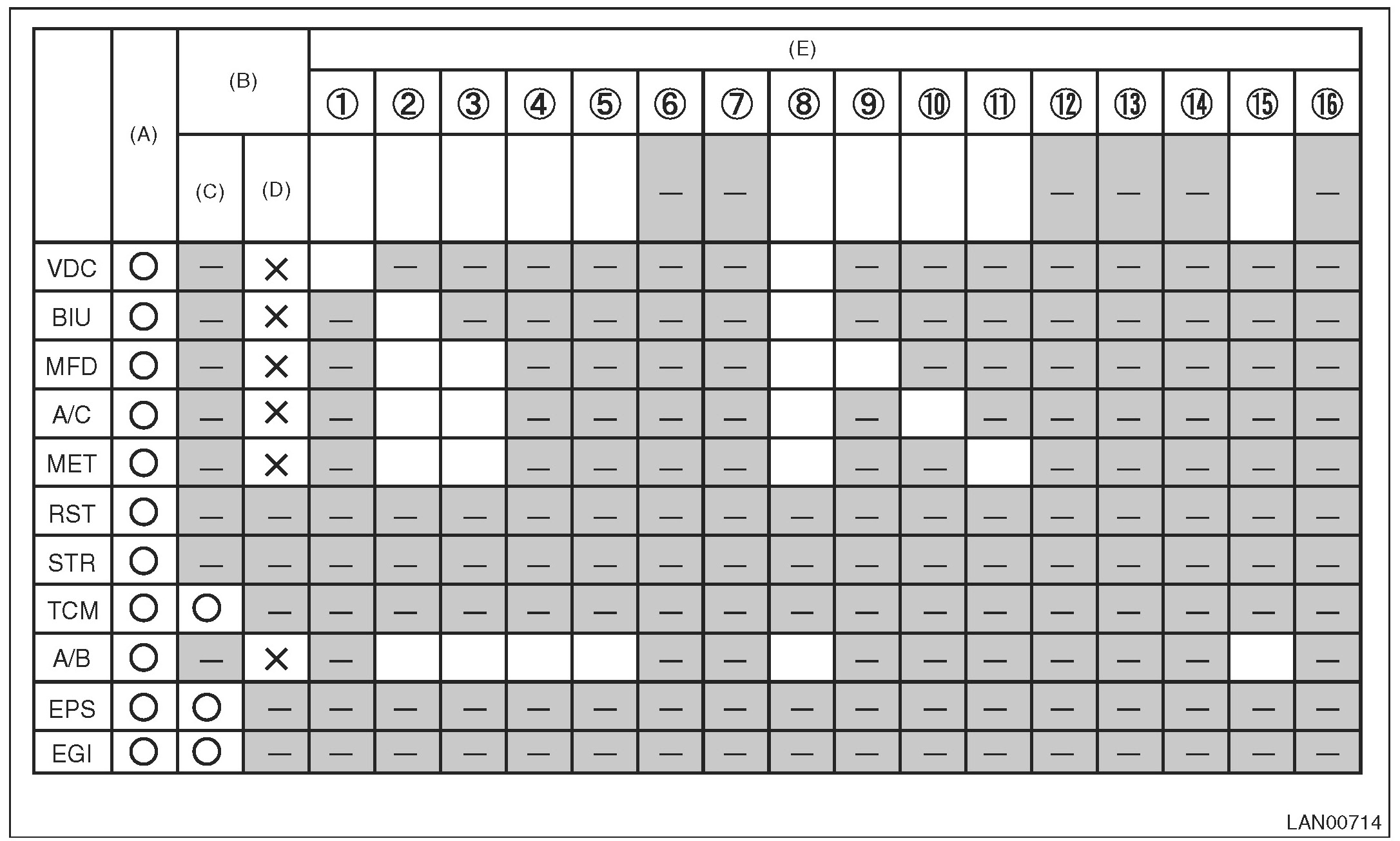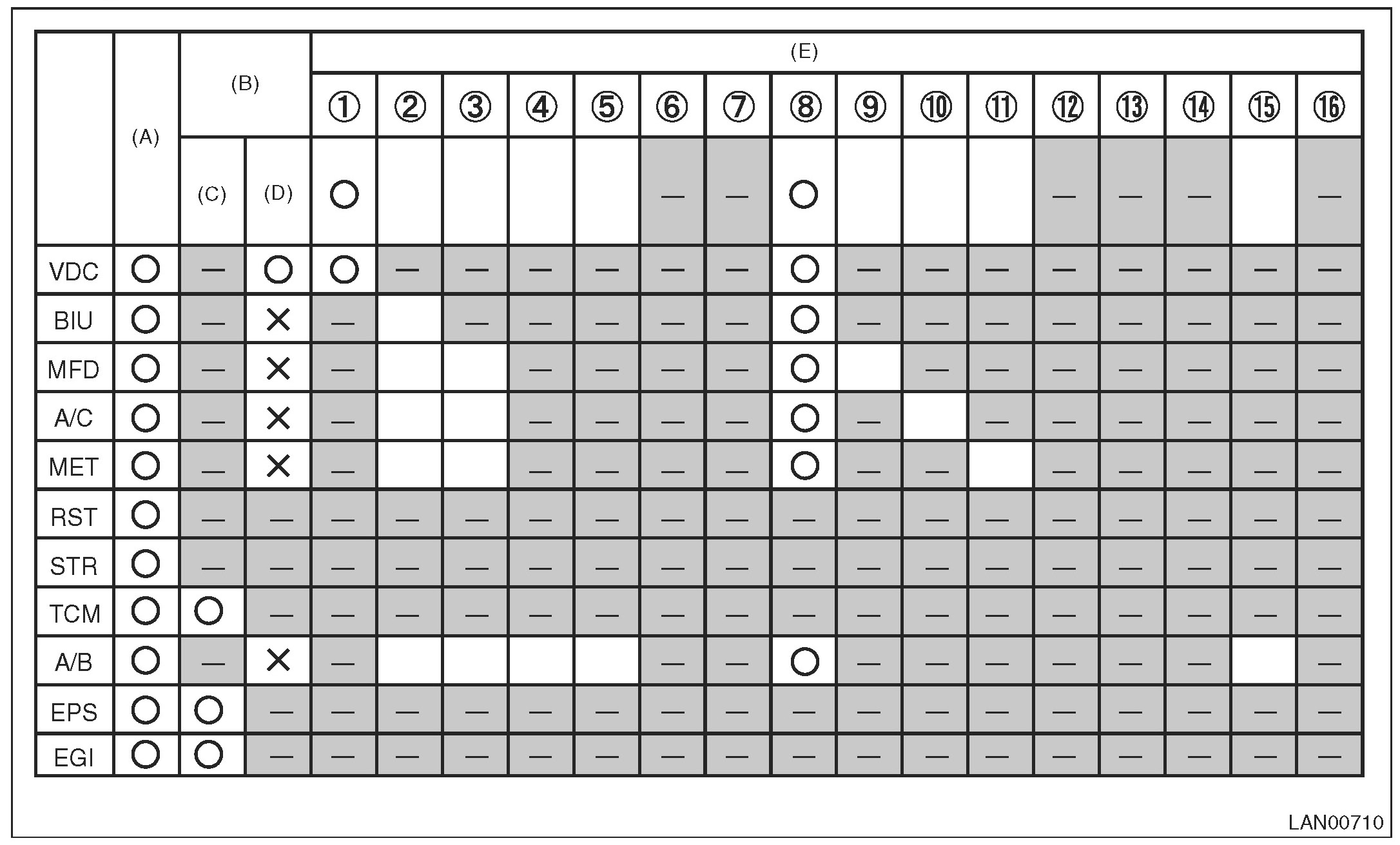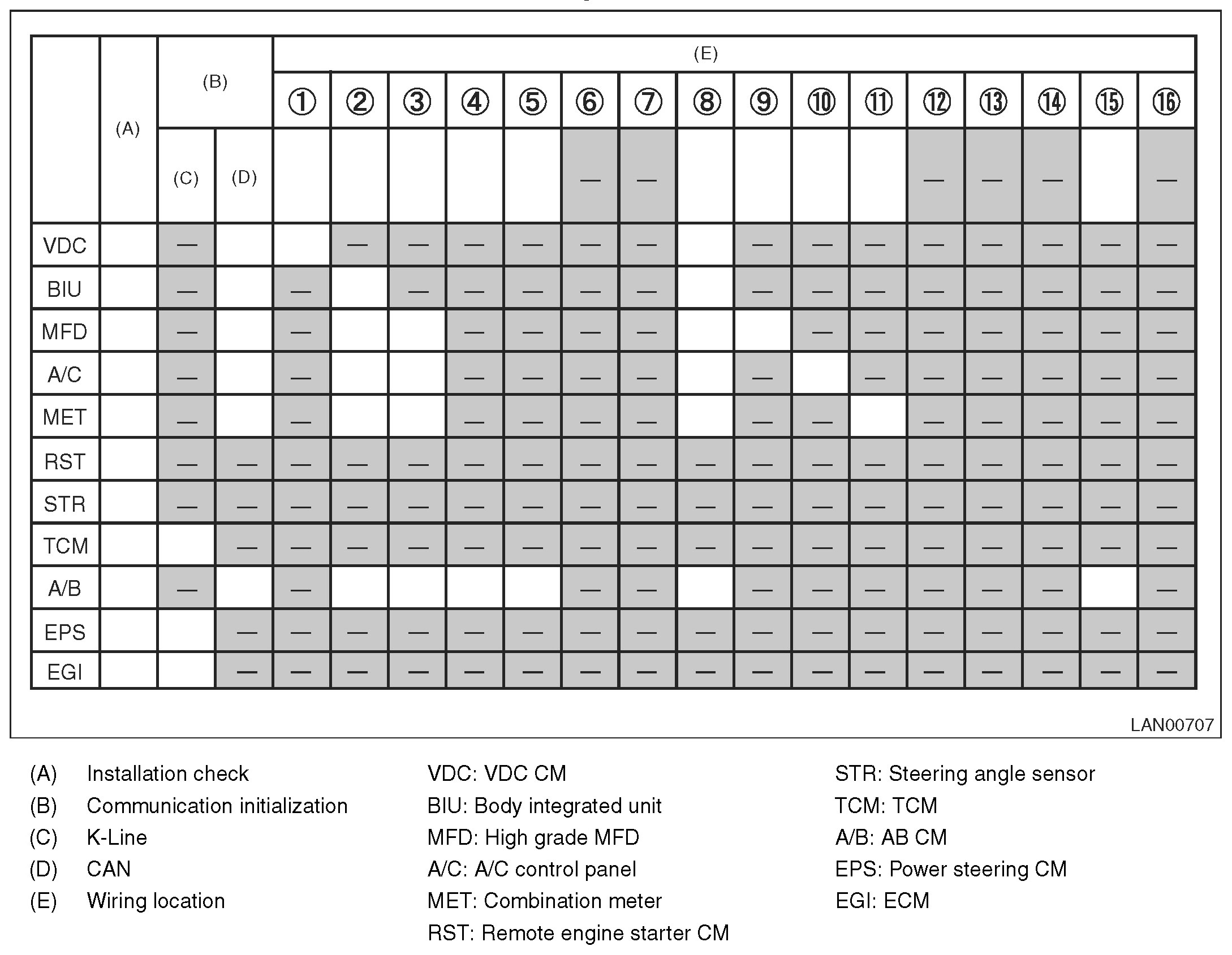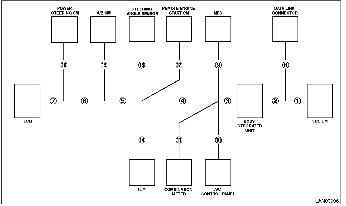 NOTE: Each module can be distinguished from the others depending on the difference of no-receive conditions between modules. LAN System (Diagnostics)
