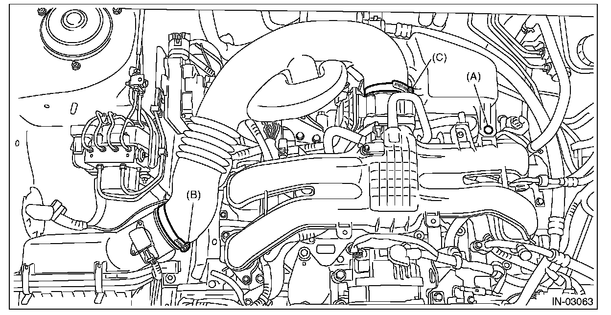4. Loosen the clamp (C) which connects the air intake boot and throttle body.