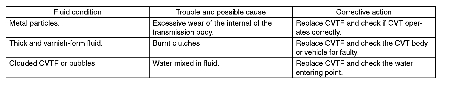When replacing CVTF, determine the condition inside the transmission body by inspecting the drained CVTF.