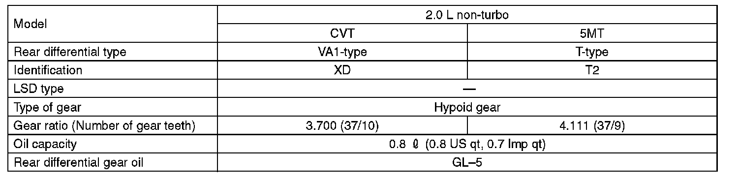 REAR DIFFERENTIALWhen replacing a rear differential assembly, select the correct one according to the following table.