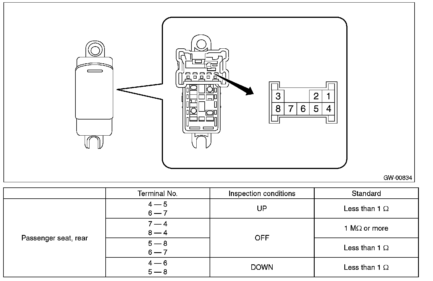 CAUTION: Since the switch - power window main is controlled by CPU, do not check continuity for switch alone with the circuit tester. Performing continuity check with circuit tester can damage the switch - power window main circuit.