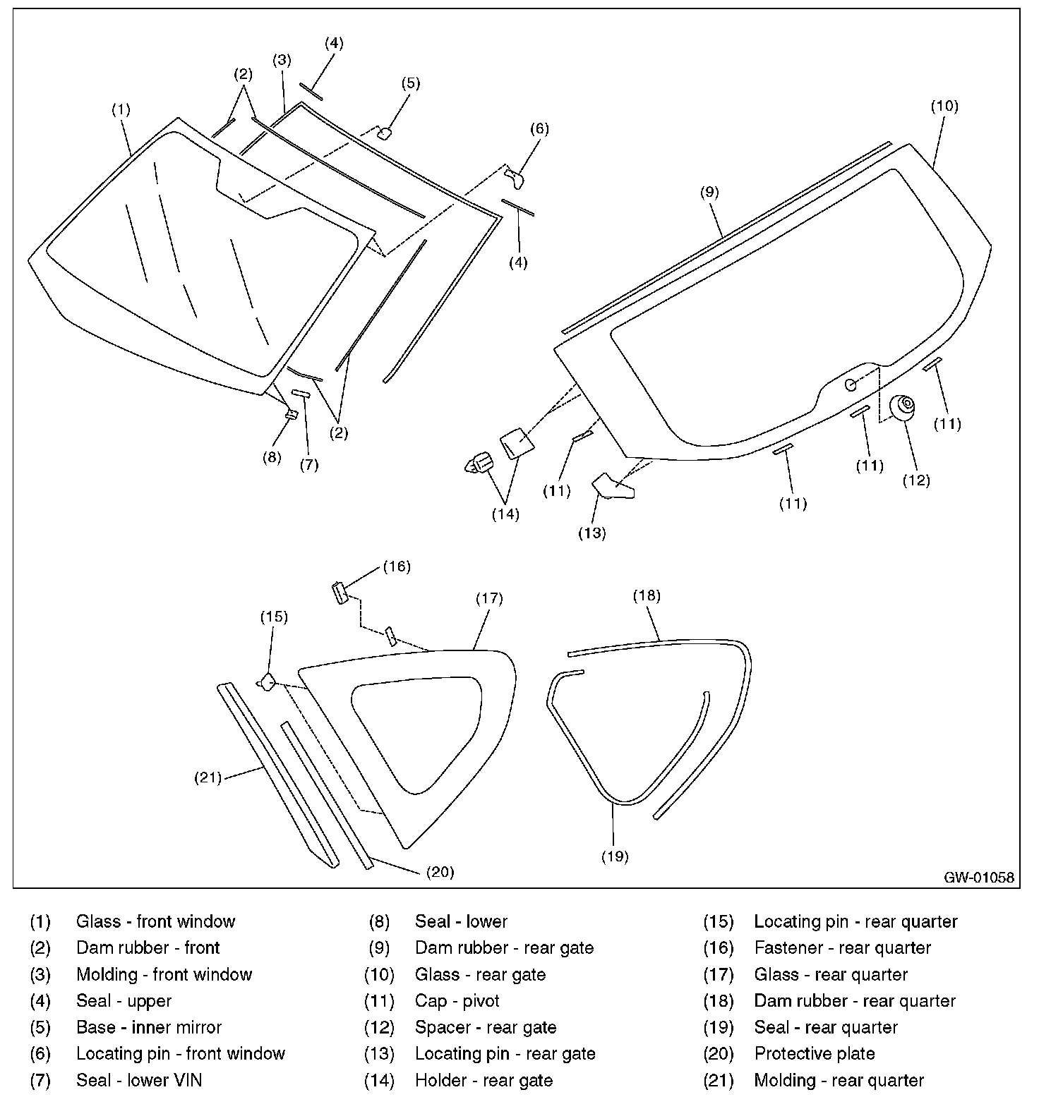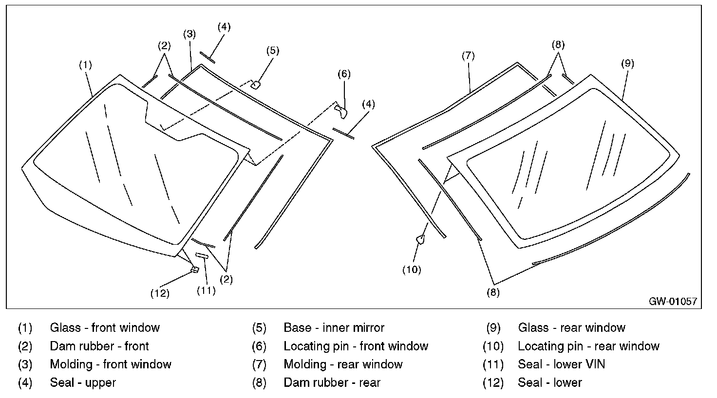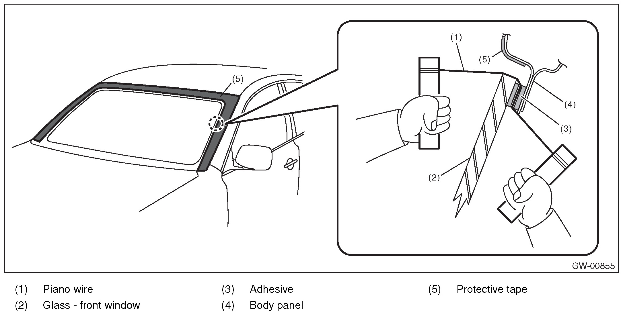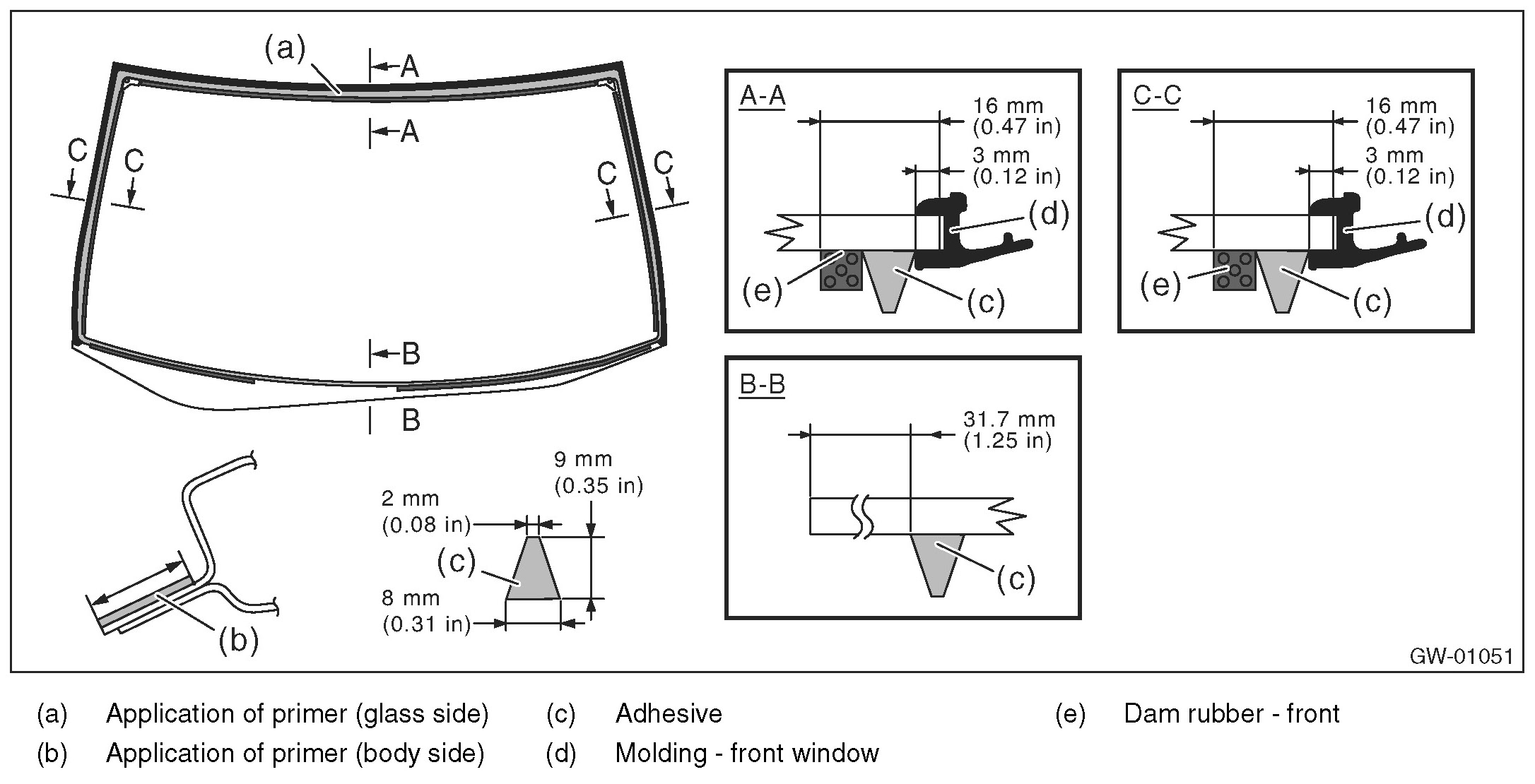 - For minimum drying time and vehicle standing time before driving after bonding, follow instructions or instruction manual from the adhesive manufacturer.