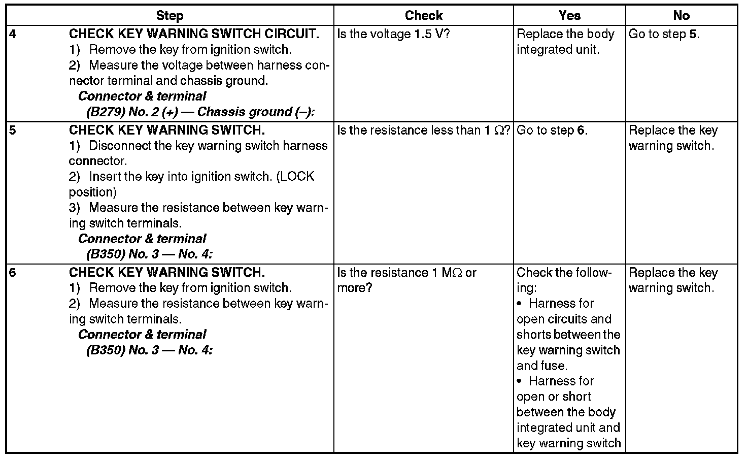CHECK KEY WARNING SWITCH