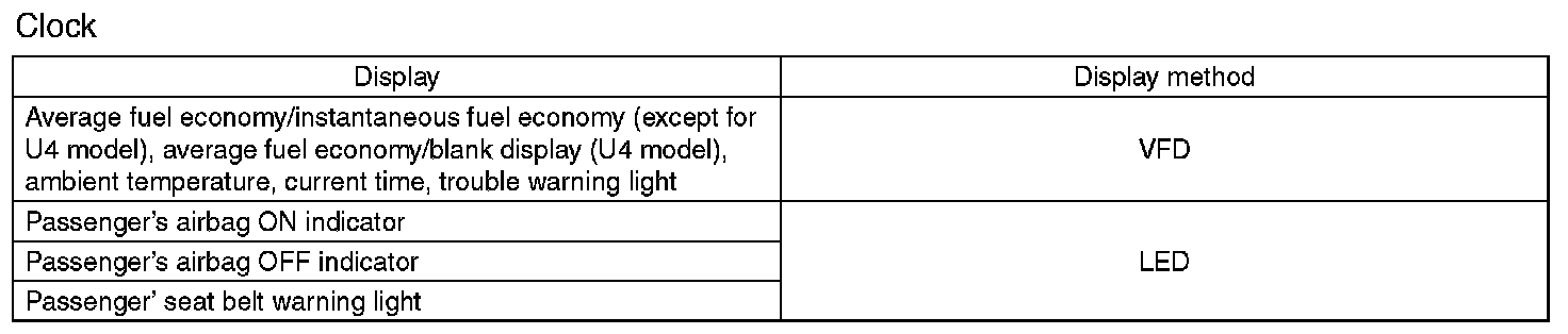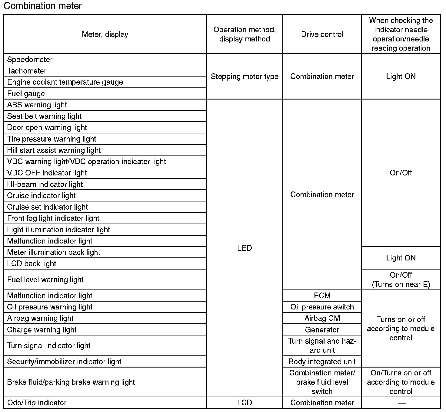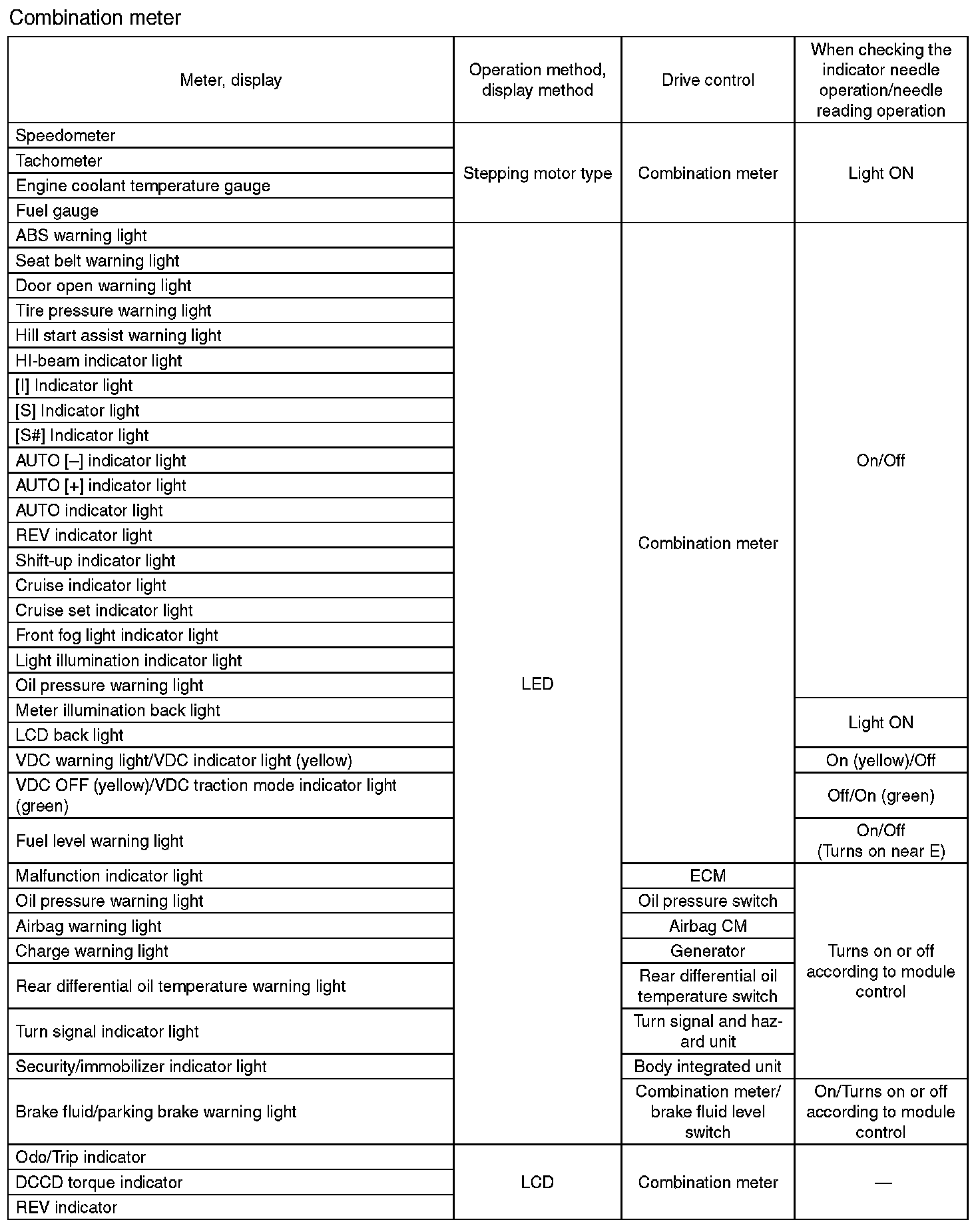 Instrument Panel, Gauges and Warning Indicators: Specifications