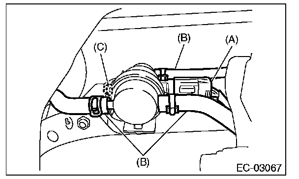 4. Remove the nut (C) securing the bracket to the fuel tank and remove the pressure control solenoid valve assembly.