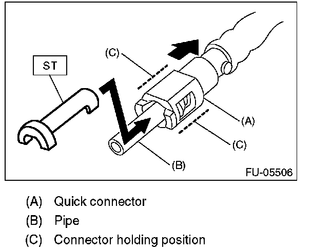 1. Attach ST to the pipe and push ST in the direction of arrow mark to disconnect the quick connector.