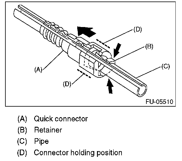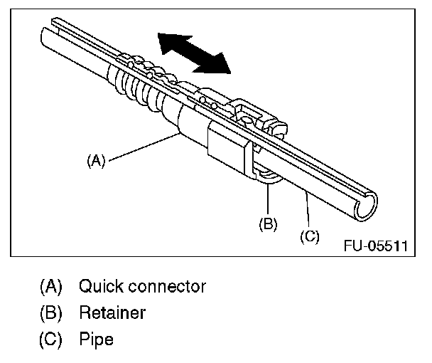 1. Push the retainer in the direction of the arrow, disconnect the quick connector from pipe.