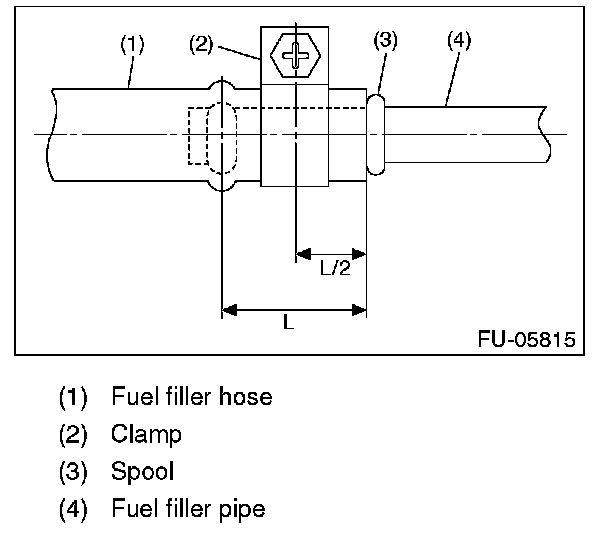 NOTE: Correctly insert the fuel filler hose to spool, and then install the clamp as shown in the figure.