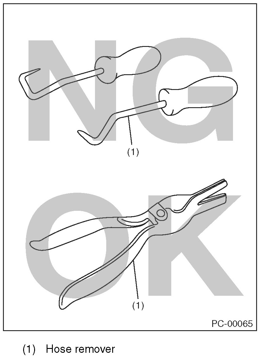 - Perform the operation with the hose removed. If the operation is performed without removing the hose, it may damage inner surface of the hose.