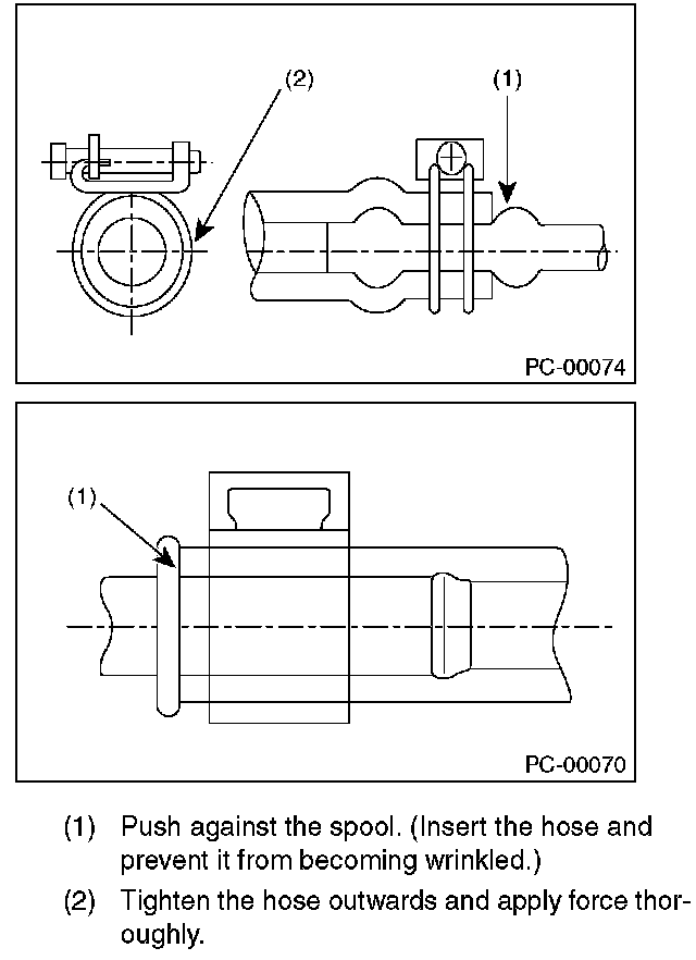 - Insert the hose to the specified position (stopper or spool) securely.