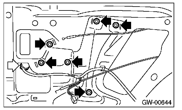 3. Remove the bolts, and then remove the rear regulator and motor assembly.