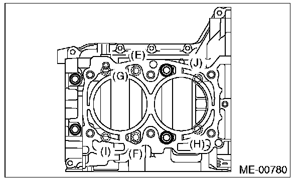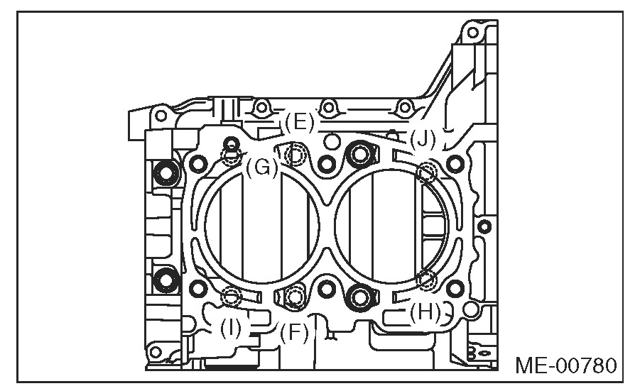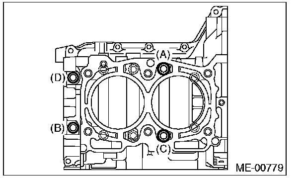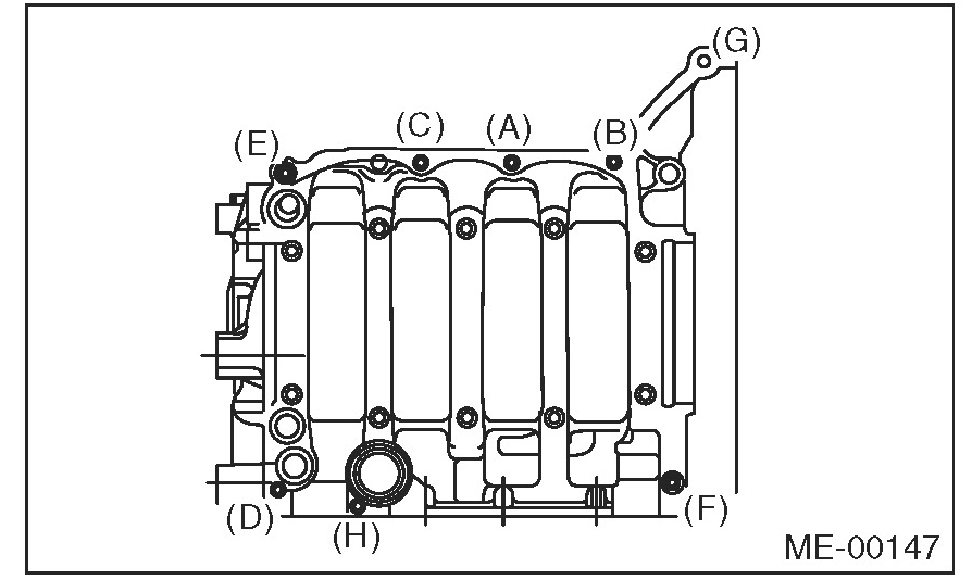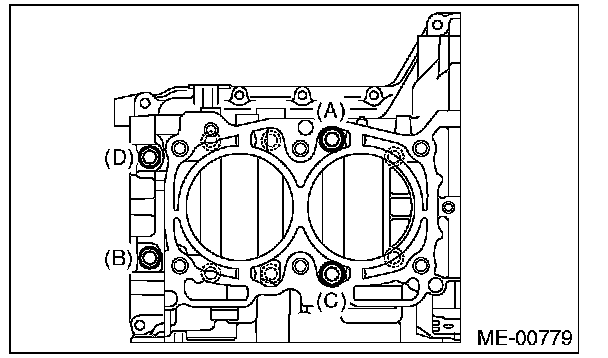 Cylinder Block10 mm bolts on the LH side (A - D) 10 Nm (1.0 kgf-m, 7.4 ft-lb)