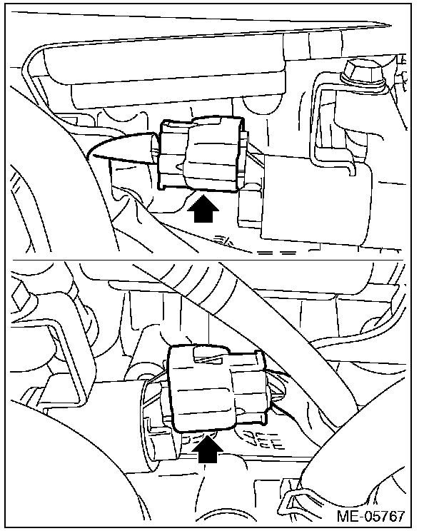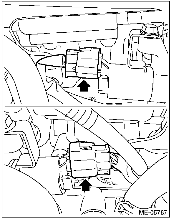 6) Disconnect the connector of the intake oil flow control solenoid valve.
