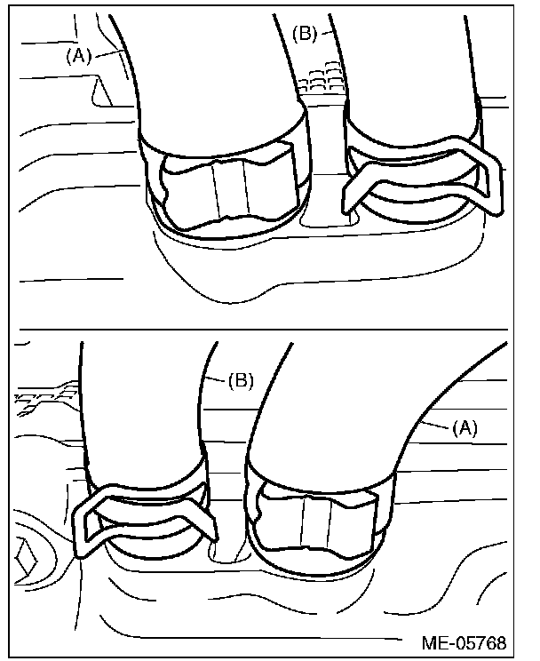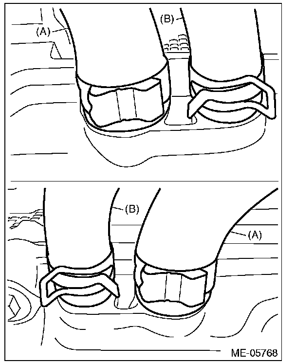 6) Install the timing belt cover No.2 RH (A) and timing belt cover No.2 LH (B).