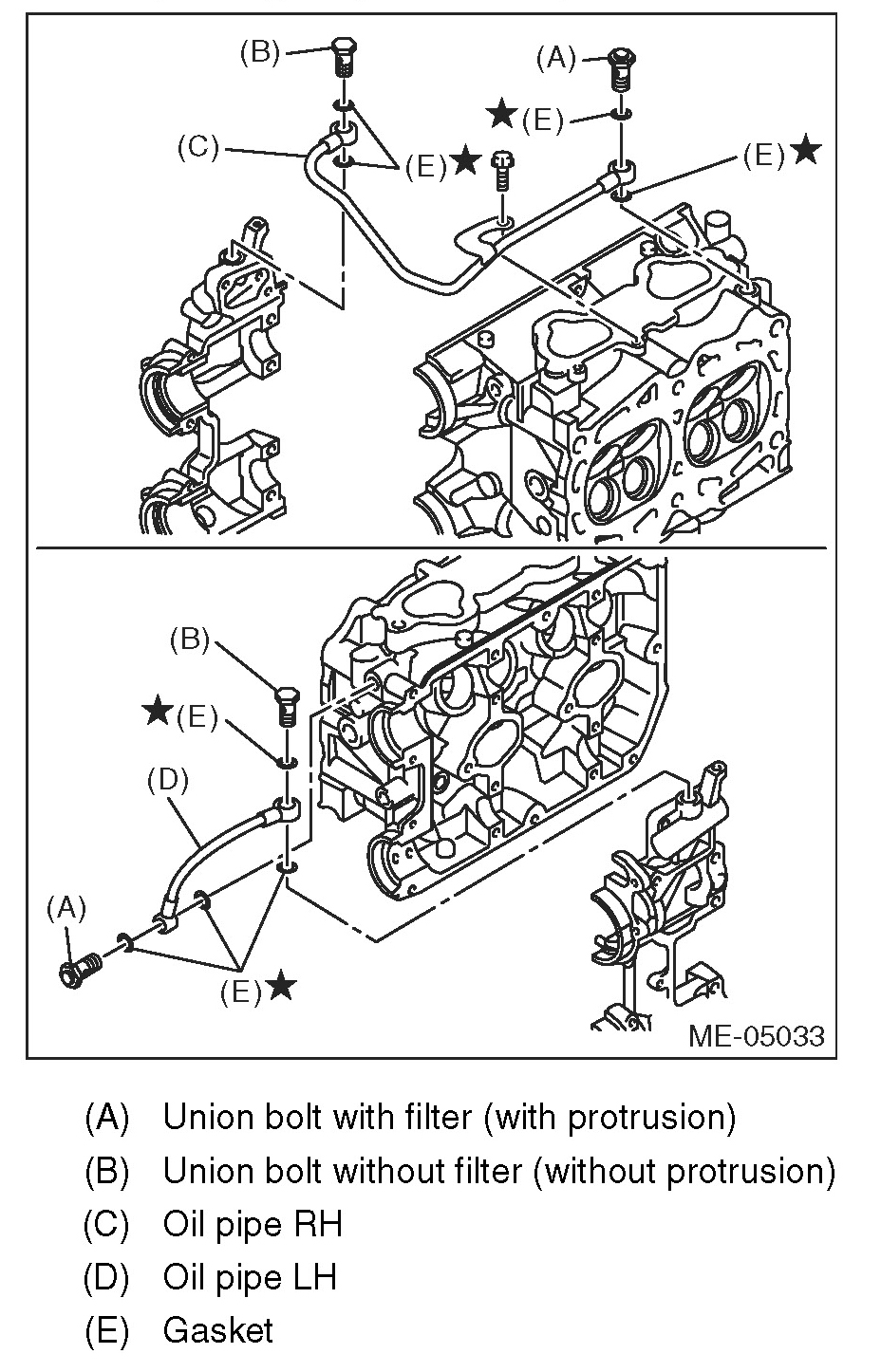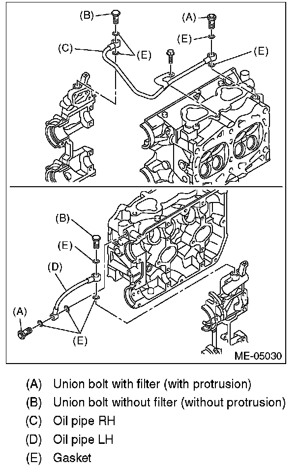 4) Install the oil pipe to the front camshaft cap using the union bolt without filter (without protrusion).